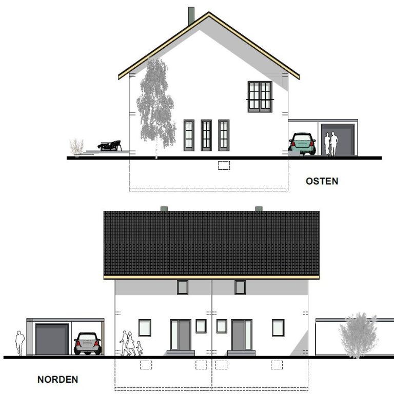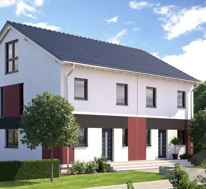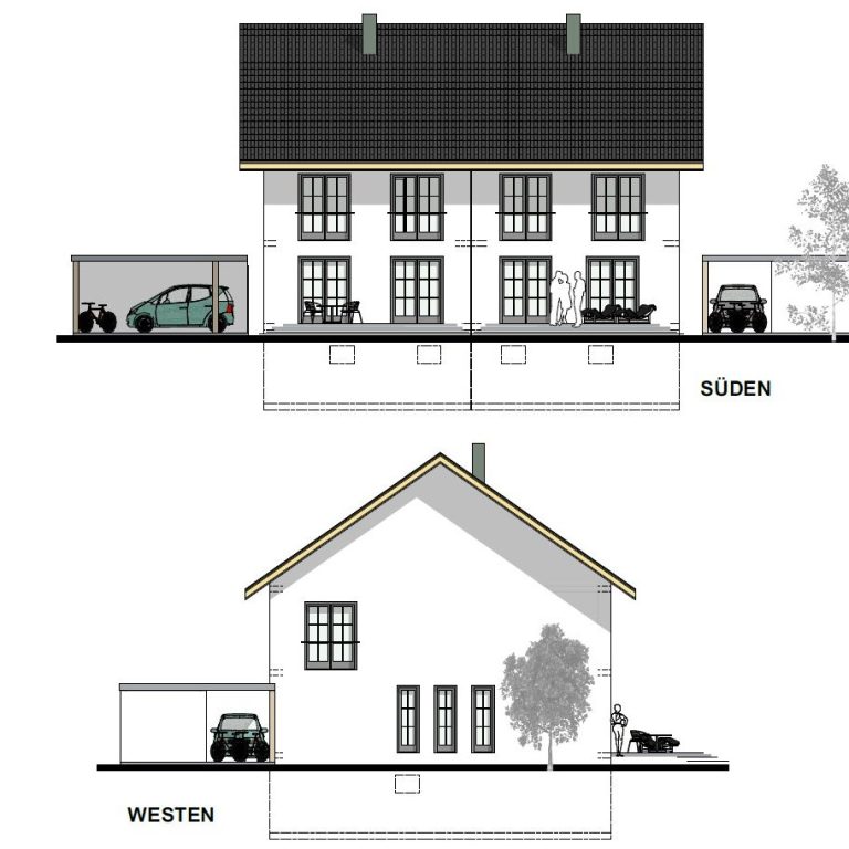 Auf jeweils 554 qm Grundstücksfläche entstehen zwei Doppelhaushälften mit jeweils 6,5 Zimmer auf 174 qm Wohnfläche verteilt, 63 qm Nutzfläche, zwei Carports, gepflasterte Zufahrt, neueste Heiztechnik inkl. PV Anlage und Energieeffizienz KfW 55 in massiver Bauweise (kein Fertighaus!) Schlüsselfertiger Neubau für unter 3.000 €/qm Wohnfläche inklusive Grundstück und Anschlusskosten!